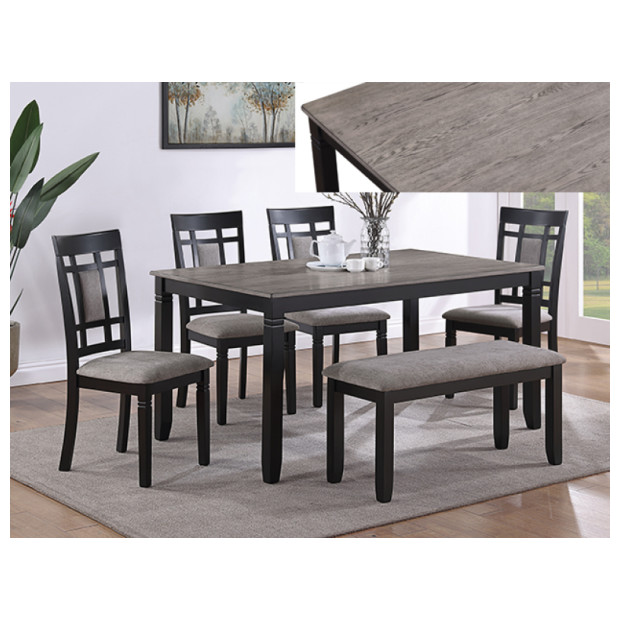 Paige Light Grey/Blk STD Table, Bench + 4 chairs
