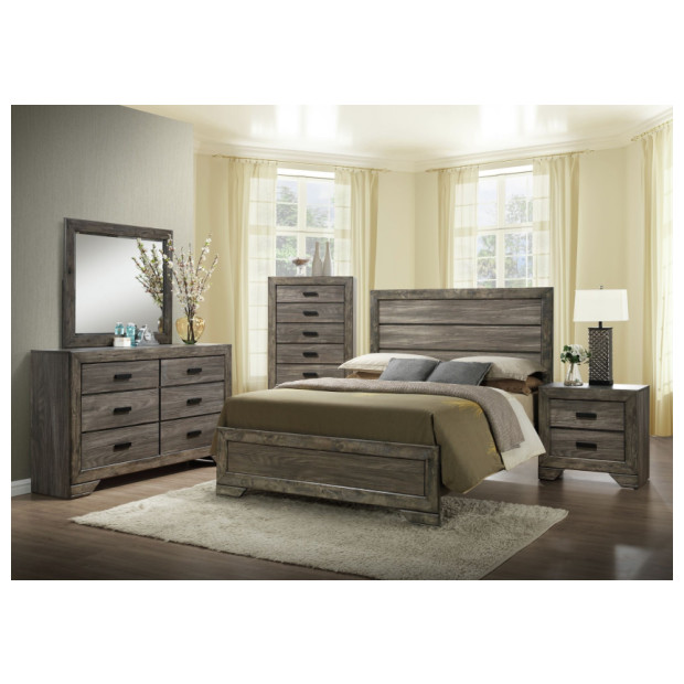 Create a statement of sophisticated style in your bedroom with the Nathan Queen Bedroom Collection. This set showcases a rich, distressed wood finish that effortlessly brings rustic elegance to any space. The collection includes a queen-sized bed, a dresser with a matching mirror, and a nightstand, each piece designed with clean lines and ample storage to combine beauty with functionality.
