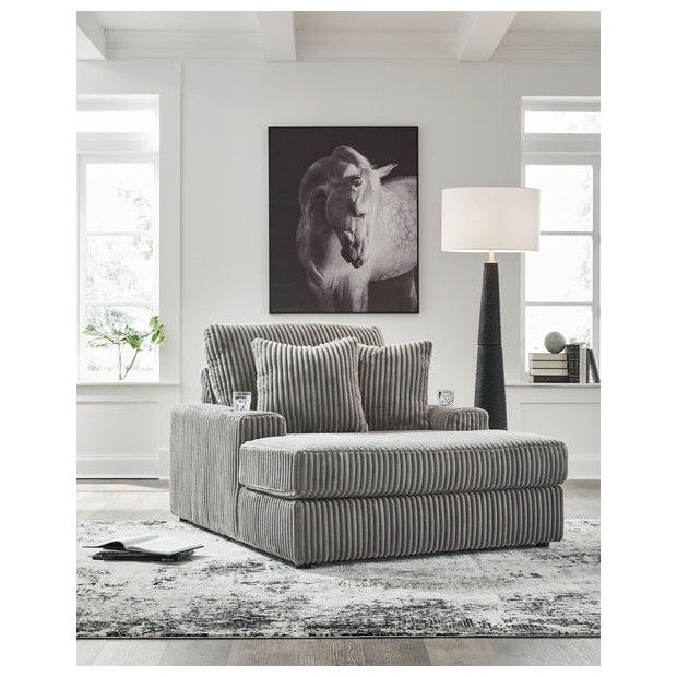 Plush and posh. Showcase your eye for on-trend texture with the statement-making cord upholstery of this chaise. Its stunningly soft fabric entices in a warm neutral hue, complementing contemporary color palettes. Sink into the cushions and plan to stay a while—this cozy oversized chaise highlights your high-end approach to comfort and style.