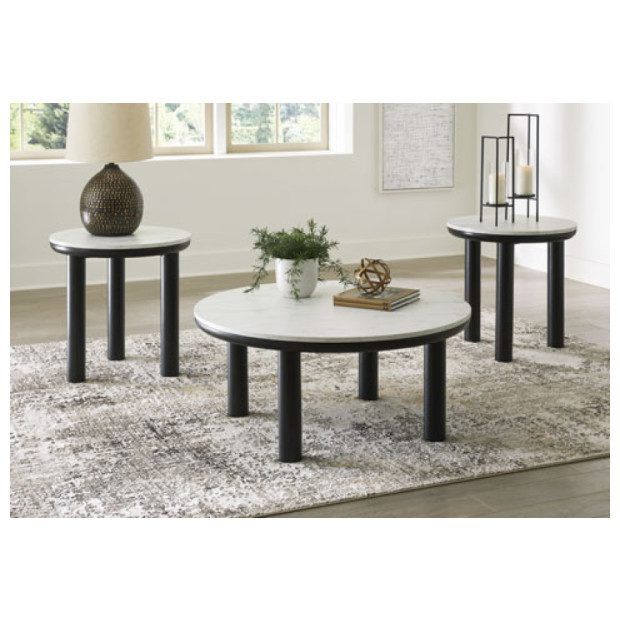 Xandrum Faux Marble Wht/Blk 3-Pack Tables