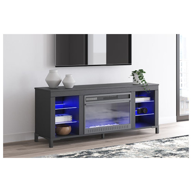 Level up your gaming experience and make movie nights to remember. This TV stand with electric fireplace extends your entertainment beyond the screen. Its built-in fireplace brings the heat, synchronizing with LED backlighting on the shelves. And you can customize the vibe with three trendy color options: blue, white and red. Modern function. Captivating, cool style. With this TV stand, revamp your home’s recreational hub like never before.