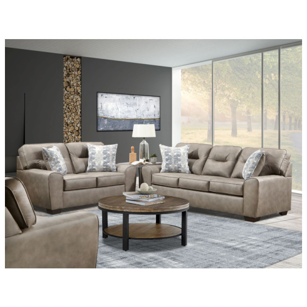 Embrace a nature-inspired ambiance in your family room with this exquisite set. Upholstered in durable brown microfiber fabric, the sofa and loveseat exude a timeless elegance that effortlessly blends with any home decor.
