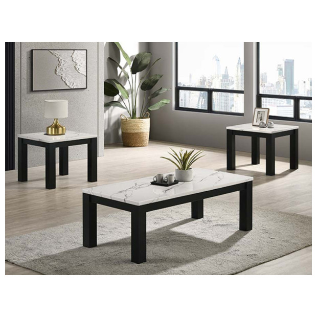 Elevate your living room with this sleek and stylish cocktail table set, designed for the discerning modern homeowner. The set includes a sophisticated coffee table and two matching end tables, each featuring a striking faux marble top that adds a touch of luxury and refinement.