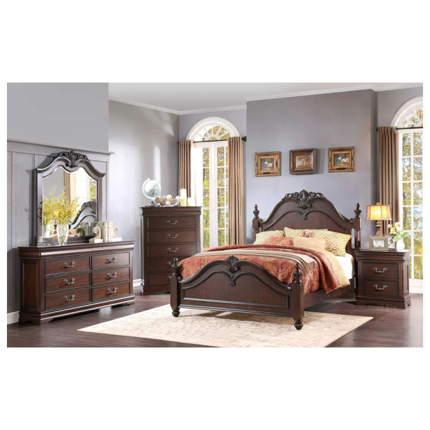 Cherry King bed,dresser,mirror,nightstand B6580