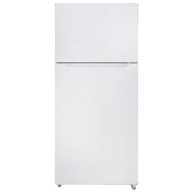 18.1 Top Mount White Refrigerator with Adj. Glass Shelves, Humidity Controlled Clear Crispers, Clear Dairy Compartment, Gallon Door Storage, LED Lighting, Freezer Shelf, Reversible Door, Pocket Handles (Non-Branded)