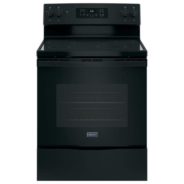 Crosley black 30" freestanding smooth top range with 4 burners and self-clean oven